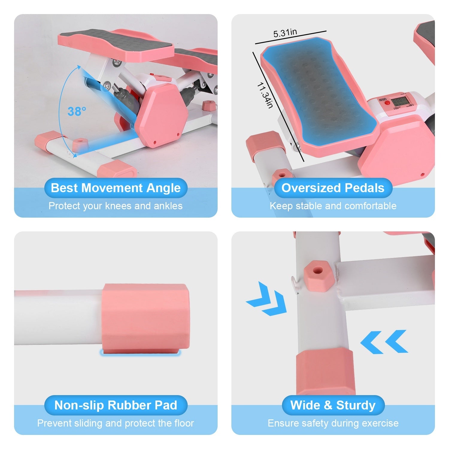 • *Stable & Mute*: The non-slip pad keeps the exercise stepper stable during workout. Also,you can rotate the 2 mute columns on both sides of our workout stepper for quiet operation. The oversized pedals provide a wider surface area for your feet,preventing foot slippage and increasing comfort during longer workouts.